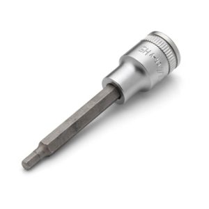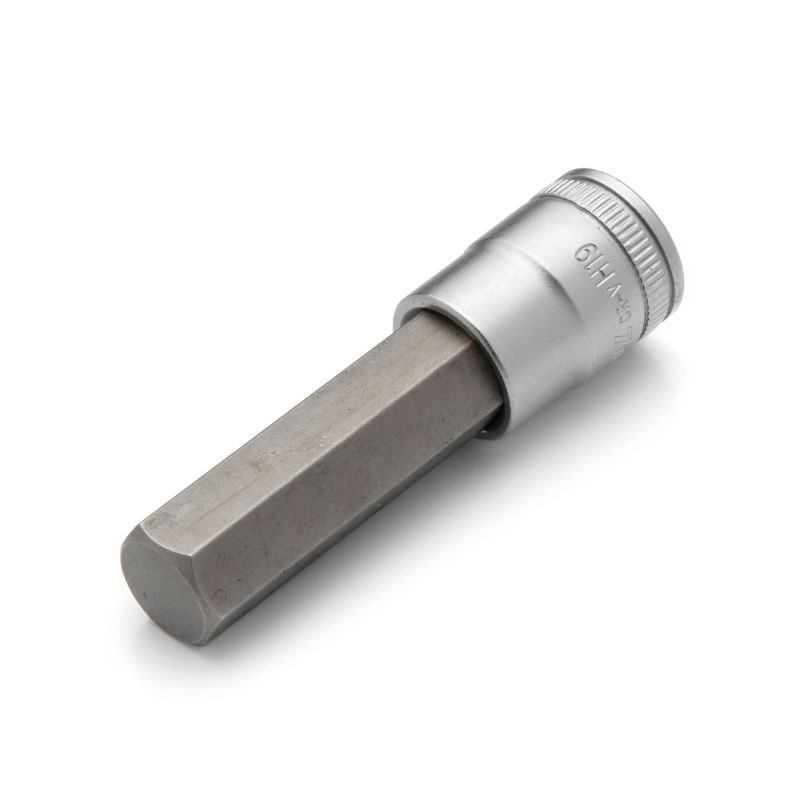 Herramienta de torsion profesional que integra una punta de acero aleado de alta dureza en un cuerpo alargado de 100mm con acabado cromado mate. Esta longitud extendida facilita el acceso a tornillos alojados en tapas de cilindros, transmisiones y estructuras complejas sin necesidad de extensiones adicionales que puedan restar precision. El rectificado de la punta hexagonal asegura un calce perfecto en el alojamiento del perno, distribuyendo la fuerza de manera uniforme para evitar el redondeo de las caras internas y garantizando una transmision de torque fluida en las tareas mas exigentes del taller.