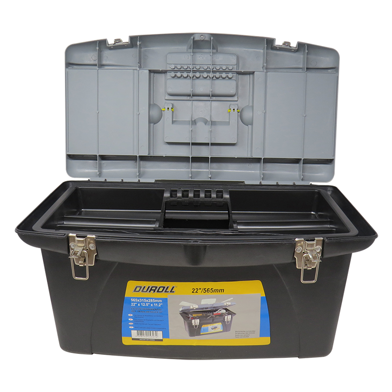 Gran capacidad y resistencia para el profesional en movimiento. La caja de herramientas reforzada Duroll de 22 pulgadas ofrece el espacio ideal para organizar maquinas electricas y herramientas manuales de gran tamaño en una estructura liviana pero extremadamente robusta. Fabricada con polimeros de alta densidad y cierres metalicos de seguridad, garantiza una durabilidad superior frente a impactos y un transporte confiable en el taller o la obra. Su diseño ergonomico y su bandeja interna permiten mantener el orden y la proteccion de tus herramientas mas valiosas.
