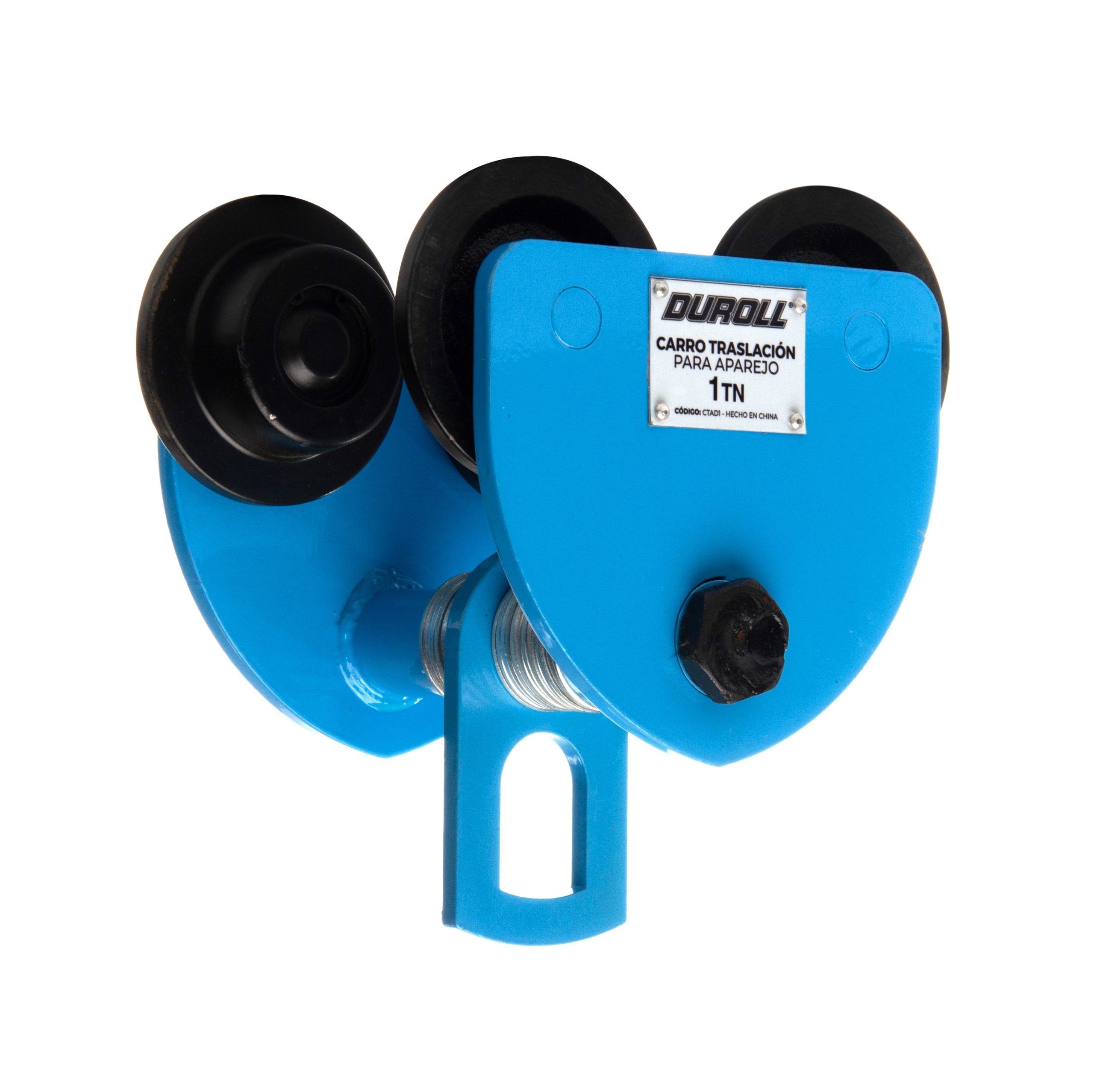 Carro de traslacion manual (Trolley) construido con placas de acero estructural de gran espesor y pernos de suspension reforzados. Cuenta con cuatro ruedas de fundicion de acero mecanizadas con precision, montadas sobre rulemanes blindados que minimizan la friccion y aseguran un rodado silencioso bajo carga maxima. Su sistema de ajuste mediante arandelas espaciadoras permite instalarlo de forma sencilla en una amplia variedad de perfiles de viga doble T (IPN/UPN). El acabado con pintura epoxi industrial protege el equipo contra la corrosion en ambientes de trabajo exigentes. Incluye protectores de seguridad que funcionan como topes y evitan el descarrilamiento, asegurando que la carga permanezca siempre centrada y estable durante el movimiento.
