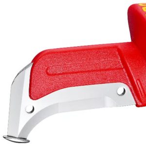 - El hueco para el pulgar y el «gancho» para los dedos al final del mango aseguran una óptima transmisión de fuerza cuando se presiona la cuchilla
