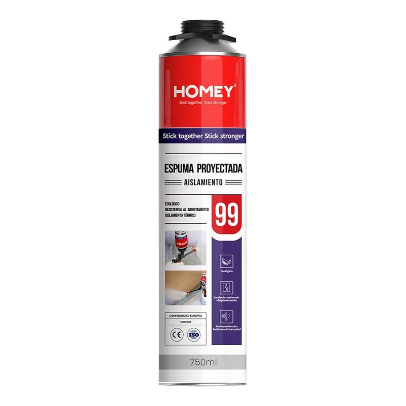 Homey 99 es un tipo de poliuretano altamente termoendurecible, que constituye un excelente material de aislamiento térmico. Puede formar una capa continua de aislamiento térmico, asegurando la interacción entre el material de aislamiento térmico y la pared y bloqueando eficazmente el puente térmico. Se utiliza ampliamente para el aislamiento térmico de tejados y paredes